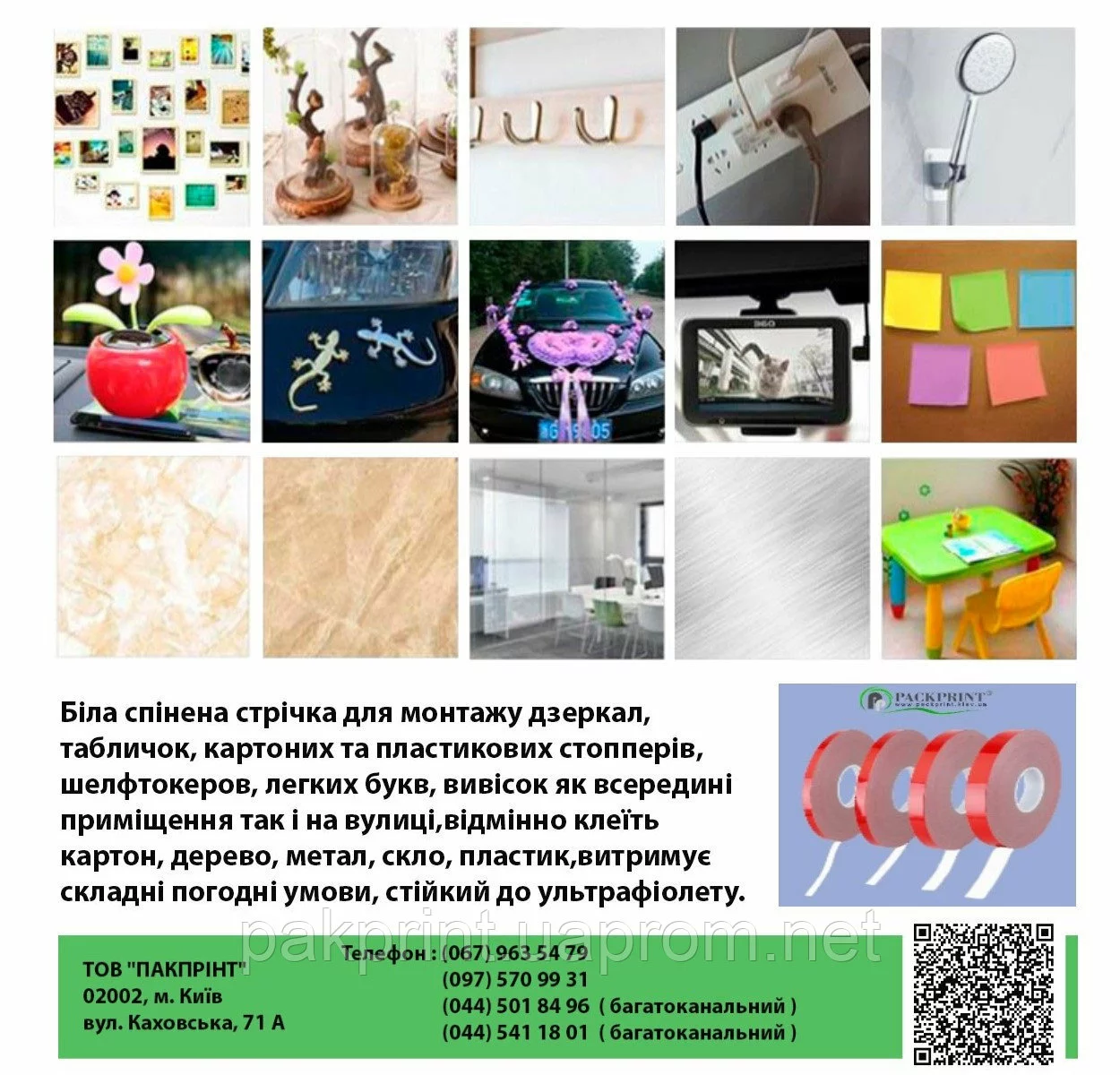 ООО «ПАКПРИНТ» предлагает купить следующий ассортимент ленты двухсторонней клейкой на пенной основе