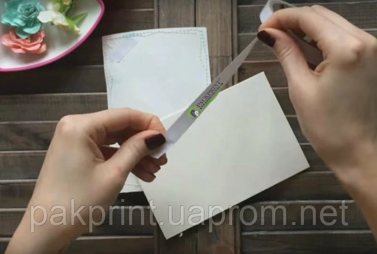 Особенностью применения плоского скотча на целюлозо - волоконной основе это нанесение ленты без использования ножниц, что существенно экономит время и трудозатраты в особенности если нужно поклеить большое количество деталей или длинные тиражи. Самоклеящаяся двусторонняя лента на бумажной основе дает полупрозрачное соединение и видна при склейки прозрачных материалов между собой.